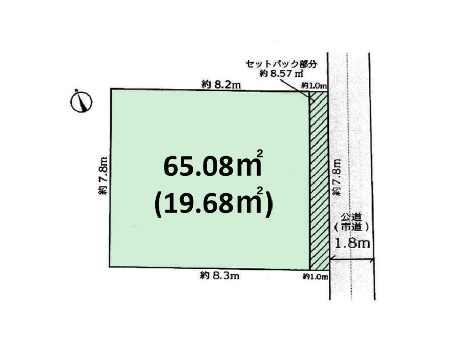 土地面積はセットバック部分を除いた面積です。セットバック後は道路幅が1.8mより広くなります。
