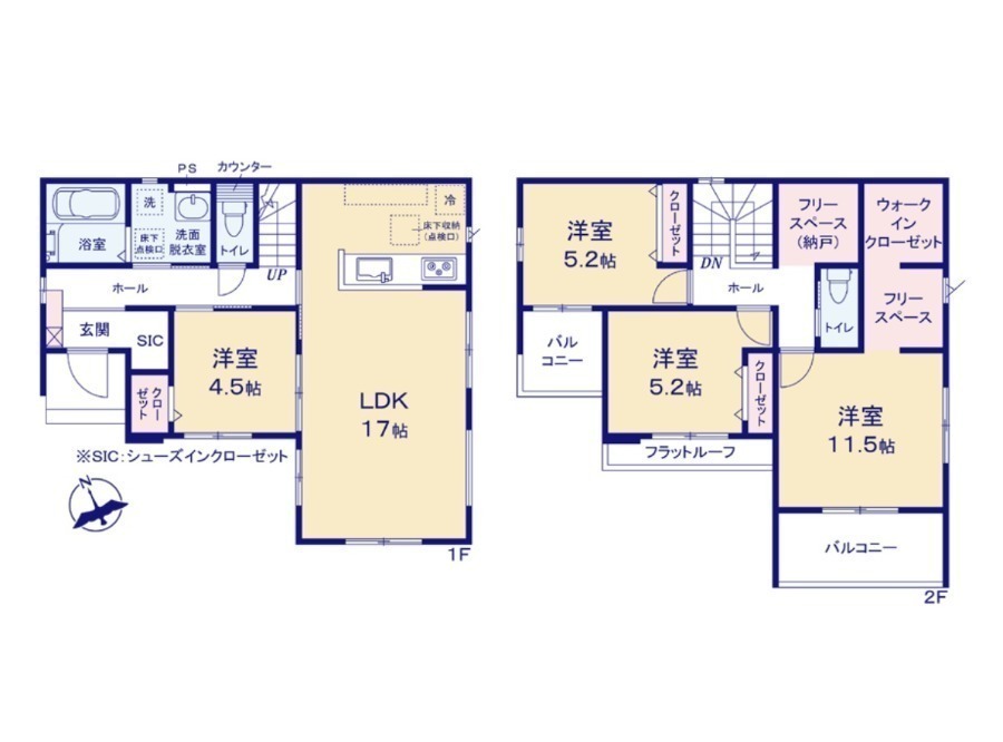 敷地面積60坪超!収納、設備充実のファミリー向け新築分譲住宅です♪・収納やキッズスペース等、色々使えるフリースペース2箇所あり・全居室南向きで日当り良好・開放感がある人気の角地・シューズインクロークで雨具やベビーカー等かさばる荷物もすっきり収納詳細お気軽にお問い合わせください♪