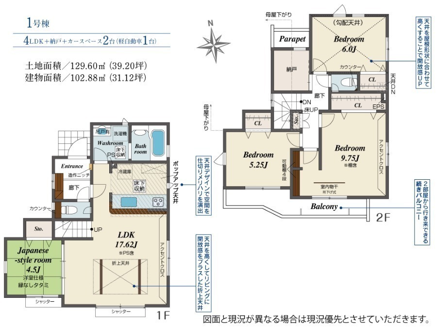 長期優良住宅/制震ダンパー採用・角地で開放感あり・駐車2台可能(車種による)・家事らくらく食洗機・リビングイン階段は家族の対話が増えそうです・水回り設備が一か所に集中しており家事動線がよい間取り・ポップアップ天井、アクセントクロス、折上天井採用詳細はお気軽にお問い合わせください!