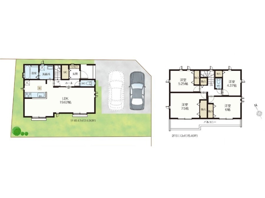 並列駐車2台可能!(車種による)/LDK約19.62帖!・シューズインクローゼット、2階ホール収納・水回り設備が一か所に集中しており家事動線がよい間取り・南側2部屋から出入りできるワイドバルコニー・今や定番の人気の対面キッチン詳細はお気軽にお問い合わせください!