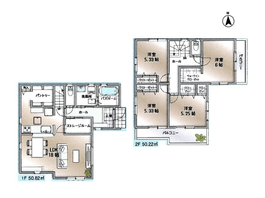 大型パントリー、ストレージルーム、ウォークインクローゼットがある間取り